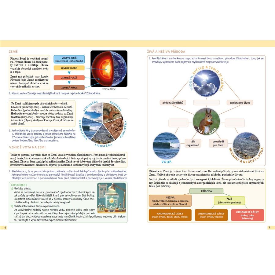 Pracovní učebnice zahrnuje mnoho badatelských aktivit, včetně badatelských listů určených k vyplnění nebo okopírování, které žáky motivují k vlastnímu objevování.