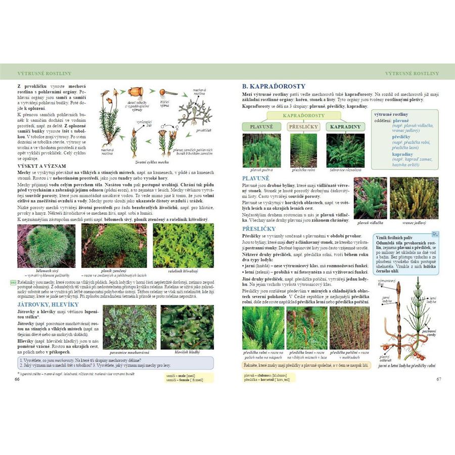 Botanická část učebnice je věnována výtrusným a semenným rostlinám. Na základě tohoto tradičního dělení se žáci naučí rozlišovat charakteristické znaky a stavbu těla zejména nahosemenných a krytosemenných rostlin. Důraz se klade na názornost obrázků, fotografií, podélných a příčných řezů jednotlivých rostlinných orgánů. Získané znalosti si žáci ověří v závěrečné části učebnice věnované společenstvům. Součástí každé kapitoly jsou otázky ověřující pochopení probraného učiva, skupinové úkoly, praktické úkoly a pozorování, průřezová témata a přehledné shrnutí obsahu kapitoly. Hlavní kapitoly jsou uvedeny motivačním úryvkem z literatury spolu s otázkami na porozumění textu.
