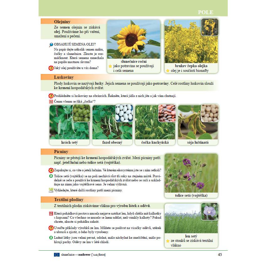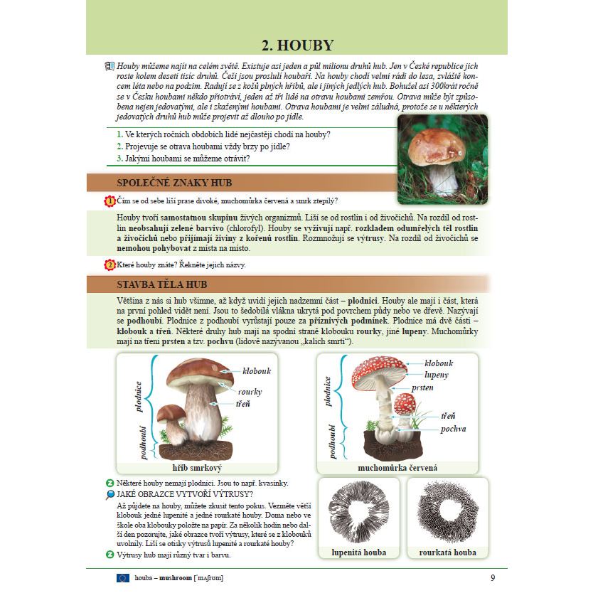 Obsahuje členění organizmů na houby, rostliny a živočichy. Největší prostor je věnován ekosystémům, které se nachází v naší republice, a jsou dětem blízké. Kapitola o ochraně přírody se zabývá vlivem člověka na přírodu a poskytuje rady, co sami můžeme pro přírodu udělat. V kapitole o mimořádných událostech najdete návod, jak se zachovat v případě požáru, vichřice, bouřky apod. Jedná se o moderní učebnici, která využívá fotografické přehledy. Je proložena mnoha úkoly, motivuje i k práci ve skupinách. Rozvíjí čtenářskou gramotnost – každá kapitola obsahuje motivační text s otázkami. Pod čarou jsou uvedena anglická slovíčka. Na konci každé kapitoly o ekosystémech je uveden text věnovaný významu ekosystému pro člověka a důležitosti správného chování. Najdete zde čtyři čtvrtletní, jedno pololetní a jedno závěrečné opakování. Na konci najdete tipy na čtyři vycházky ve čtyřech ročních obdobích.