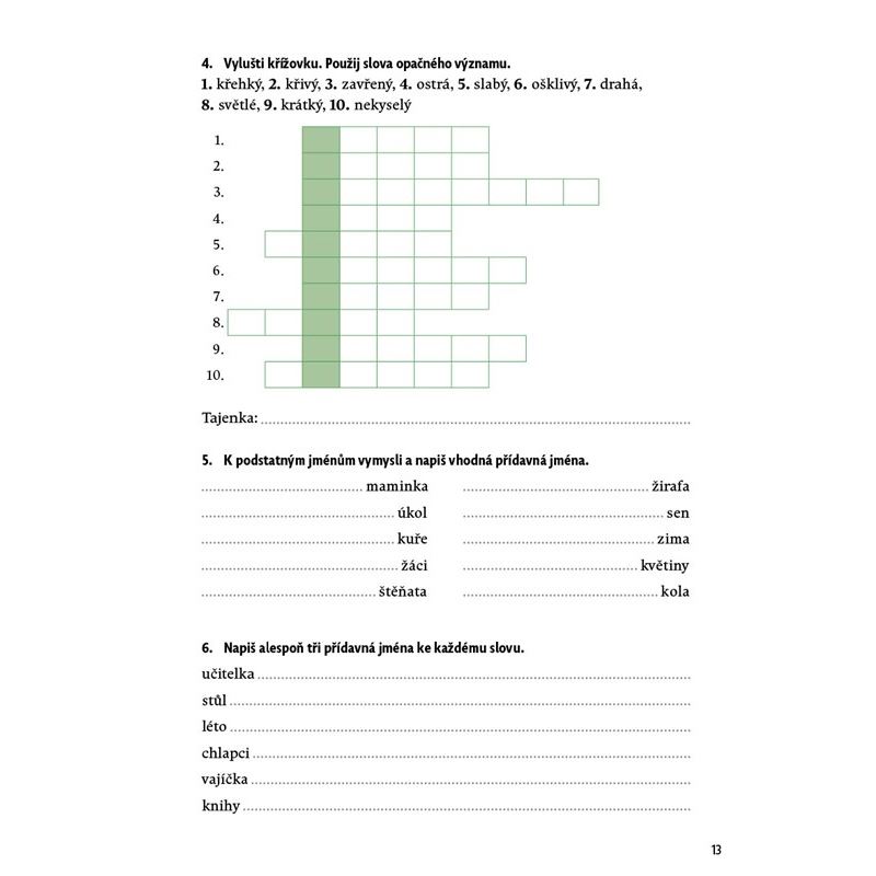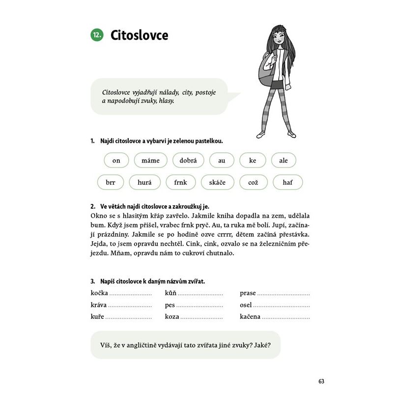 Potřebují si vaše děti zopakovat nebo procvičit určování slovních druhů? Nabídněte jim zábavnou cvičebnici plnou aktivit, úkolů, křížovek a doplňovaček. Látka je řazena do kapitol podle jednotlivých slovních druhů. Děti mohou pracovat samostatně podle svého tempa a potřeb. Nechybí shrnující opakování a klíč správných řešení. Kniha je určena pro domácí procvičování, využít ji však mohou i učitelé jako doplňkový a rozšiřující materiál k výuce českého jazyka.