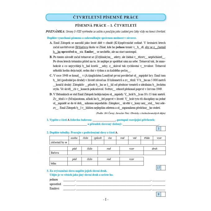 Tyto strany si můžete ze sešitu vytrhnout a použít je při čtvrtletním testování žáků.