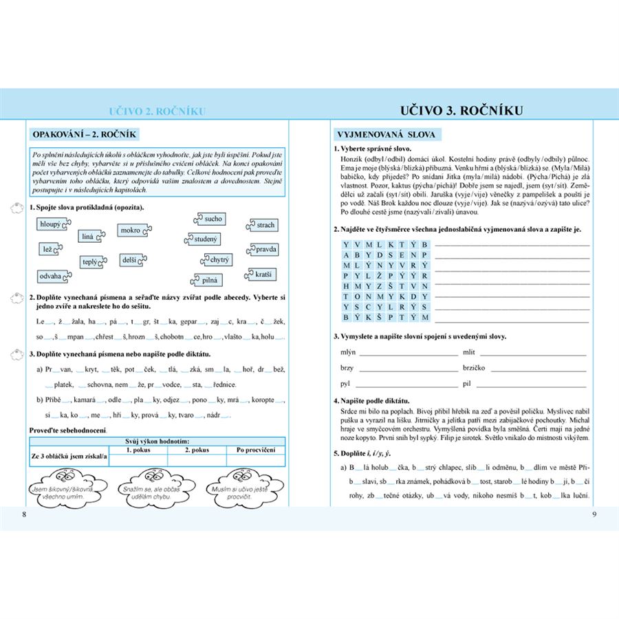 Tento nový pracovní sešit je vhodný k opakování a procvičování učiva českého jazyka ze 3., 4. a 5. ročníku. V úvodu jsou navíc připravena cvičení i pro procvičení učiva z 2. ročníku (tvrdé a měkké souhlásky, slova nadřazená a podřazená, …). Všechna cvičení jsou pojata hravou a zábavnou formou. Součástí tohoto pracovního sešitu je také sebehodnocení žáků a klíč s řešením.