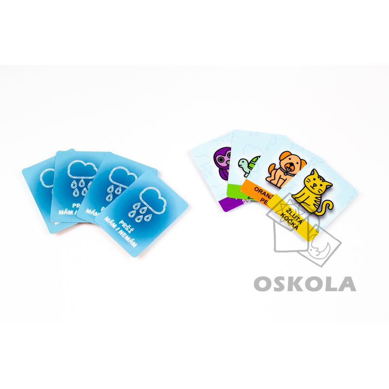 Hravé prší se zvířaty a barvami, které děti přirozeně vede k říkání celých vět. Přikládá se na stejné zvíře nebo stejnou barvu, a díky piktogramům zvládnou hru i mladší hráči. Skvělé pro domácí hraní, školku i logopedii.