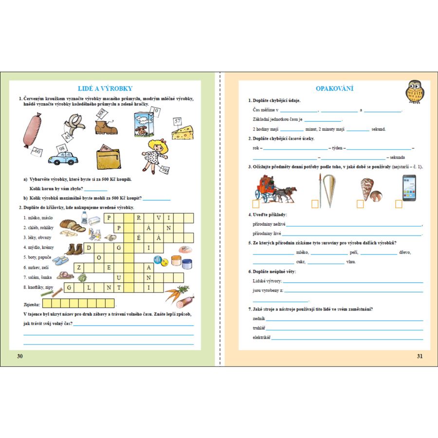Barevný pracovní sešit. K procvičení učiva slouží zábavné hádanky, bludiště a rébusy, návrhy pokusů k ověření teoretických poznatků, úkoly na vyhledávání nejrůznějších informací vztahujících se k probíranému učivu. Pracovní sešit dále obsahuje čtyři opakovací strany úkolů, které jsou rozmístěny mezi kapitolami pro zopakování a upevnění znalostí probíraného učiva. Jsou symbolicky označeny obrázkem moudré sovy.