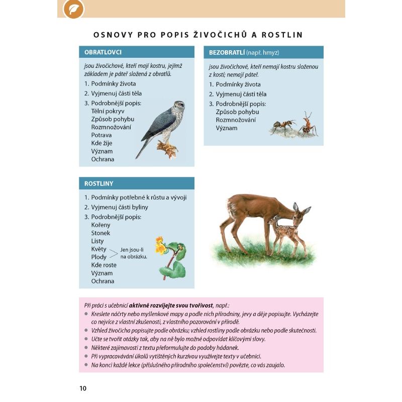Bohatě ilustrovaná učebnice přináší základní poznatky o živé přírodě. Řízeným pozorováním přírodnin a skrze množství pokusů vede žáky k vnímavému vztahu k přírodě a rozvíjí jejich ekologické myšlení i jednání. Prohlubuje dovednost žáků pracovat s učebním textem a jinými, i neverbálními zdroji informací. Samostatným doplňkem učebnice jsou Pracovní listy a titul PŘEHLEDY ŽIVÉ PŘÍRODY pro 3.–5. ročník.