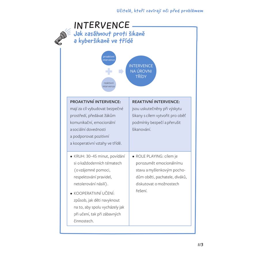 Úvod se zaměřuje na definici a druhy šikany, včetně kyberšikany, a jejich trestní aspekty. Následující kapitoly rozebírají role šikanujícího, oběti, reakce skupiny a pohled rodičů a učitelů, s doporučeními pro učitele.