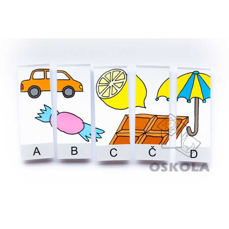 Po poskládání všech kartiček za sebe vznikne dlouhá řada se všemi písmeny české abecedy. Obrázky navazují na sebe a k převážné většině písmenek je vždy jeden obrázek.