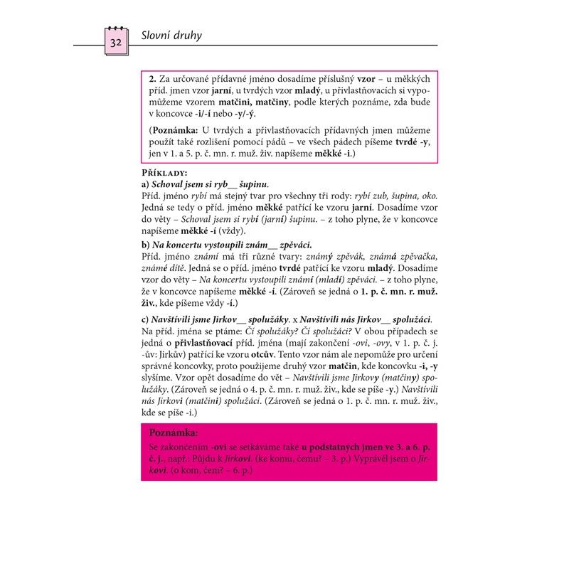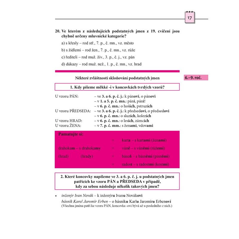 Publikace je určena především žákům 2. stupně ZŠ a středoškolským studentům, některé části mohou využít i žáci 1. stupně ZŠ, zároveň kniha poslouží jako pomůcka pro učitele a rodiče. Kniha je rozdělena do deseti kapitol podle jednotlivých slovních druhů a v každé kapitole se seznámíte s tím, co daný slovní druh označuje, jak ho poznáte v textu a co pomůže při tvorbě správných spisovných tvarů, výklad je doplněn řadou cvičení. Kniha vysvětluje také správný pravopis slovních druhů.