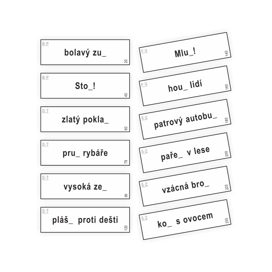 kartičky k procvičení spodoby hlásek na konci slova i ve slově