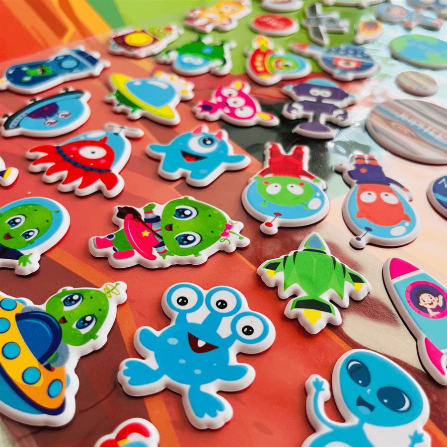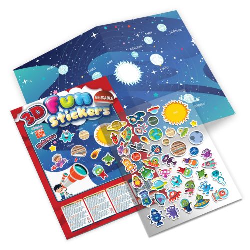 Dopřejte dětem zábavu, která nekončí, a rozvíjejte jejich představivost díky 3D samolepkám – inovativní novince se znovupoužitelnými samolepkami v provedení – Tajemný vesmír!