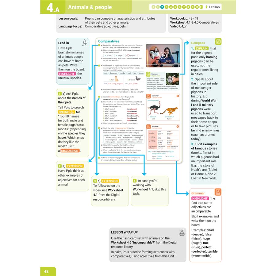 Kromě tipů na doplňkové aktivity v hodině a úloh pro víceúrovňové třídy nabízí možnost využít detailní plány vyučovacích hodin ke každé výukové lekci.