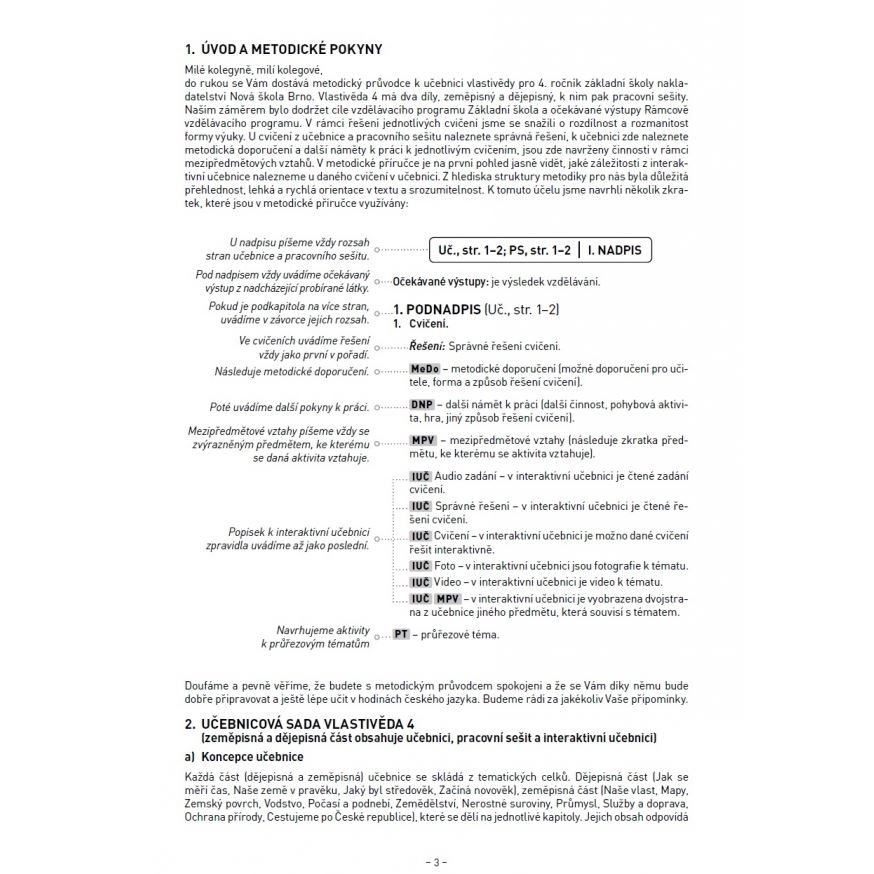 do rukou se Vám dostává metodický průvodce k učebnici vlastivědy pro 4. ročník základní školy nakladatelství Nová škola - DUHA. Vlastivěda 4 má dva díly, zeměpisný a dějepisný, k nim pak pracovní sešity. Naším záměrem bylo dodržet cíle vzdělávacího programu Základní škola a očekávané výstupy Rámcově vzdělávacího programu. V rámci řešení jednotlivých cvičení jsme se snažili o rozdílnost a rozmanitost formy výuky. U cvičení z učebnice a pracovního sešitu naleznete správná řešení, k učebnici zde naleznete metodická doporučení a další náměty k práci k jednotlivým cvičením, jsou zde navrženy činnosti v rámci mezipředmětových vztahu. V metodické příručce je na první pohled jasně vidět, jaké záležitosti z interaktivní ucebnice nalezneme u daného cvičení v učebnici. Z hlediska struktury metodiky pro nás byla důležitá přehlednost, lehká a rychlá orientace v textu a srozumitelnost.