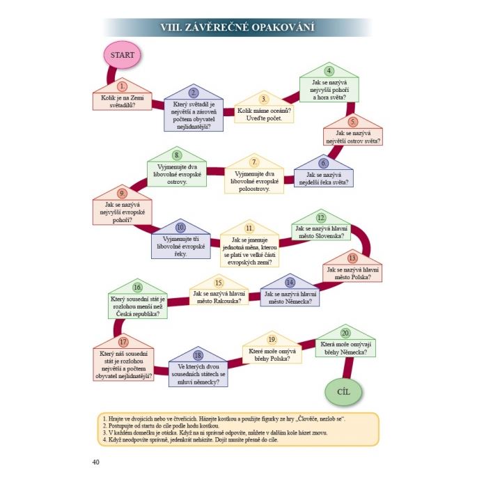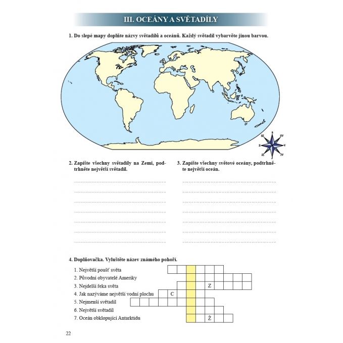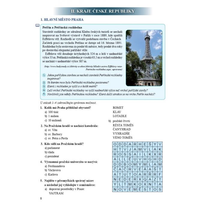 Podporuje čtenářskou gramotnost a využívá se v něm metody činnostního učení. Je zaměřený na praktické ověřování získaných vědomostí prostřednictvím práce s příruční mapou z učebnice nebo s doplňujícími mapkami, které jsou součástí textu. Přináší také doplňovačky, čtyřsměrky, přesmyčky i přílohu k vystříhání a práci s mapou. Při luštění slepých map si žáci procvičí základní orientaci na území naší vlasti a v Evropě. V kapitole Cestovatelský deník se v praktických úkolech uplatní vlastní zkušenosti žáků. Do sešitu jsou podobně jako do učebnice zařazeny úryvky z krásné literatury, kterými si žáci procvičí jak porozumění textu, tak se jim lépe přiblíží probíraná fakta. Pracovní sešit obsahuje cyklická opakování. Závěrečné opakování má podobu hry. Na konci učebnice najdete klíč s řešením většiny úkolů.