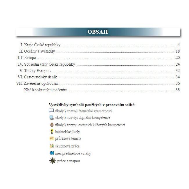 Tento pracovní sešit slouží k upevnění a procvičení učiva z učebnice Vlastivěda 5 – Česká republika jako součást Evropy vydané v edici Čtení s porozuměním. Pracovní sešit podobně jako učebnice podporuje čtenářskou gramotnost a využívá se v něm metod činnostního učení. Pracovní sešit je zaměřený na praktické ověřování získaných vědomostí prostřednictvím práce s příruční mapou z učebnice nebo s doplňujícími mapkami, které jsou součástí textu. Přináší také množství zábavných úkolů – např. doplňovačky, čtyřsměrky, přesmyčky, úkoly k vystřižení z přílohy.