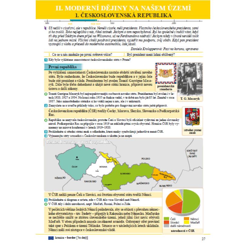 Větší prostor, než bývá zvykem, je věnován moderním dějinám. Jejich poznání vede žáky nejen k lepšímu porozumění dnešní společnosti, ale také k uvědomování si významu dodržování lidských práv a svobod a k utváření hodnot, jako je spravedlnost, svoboda, solidarita, tolerance a odpovědnost.