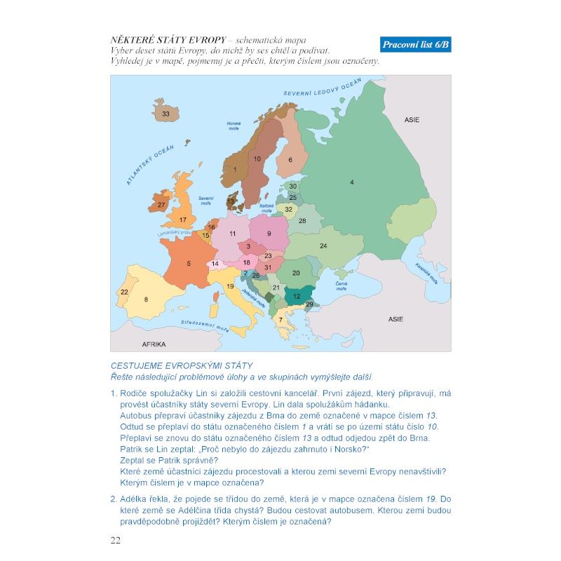 vodstvo, evropské státy, hlavní města střední Evropy a vede žáky