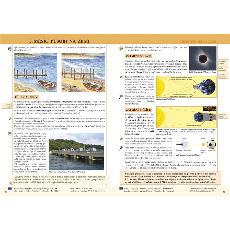 Důraz je kladen na provázanost učiva a jeho praktickou využitelnost. Kapitoly kromě učiva obsahují také názorná schémata, grafy, fotografie a obrázky. Navíc zahrnují mezipředmětové vazby formou odkazů na učivo v ostatních učebnicích, průřezová témata, skupinové úkoly, pojmy v angličtině a němčině, opakovací a tvořivé úkoly, zajímavosti, práci s internetem, práce s mapou a glóbusem. Učebnice Vstupte na planetu Zemi se zabývá základními otázkami vzniku a utváření vesmíru, sluneční soustavou. Žáci se naučí orientovat na Zemi a jak při tom používat glóbus a mapy. Učebnice seznamuje žáky s tím, jak byly ustaveny základní jednotky času a způsoby jeho určování na různých částech Země.