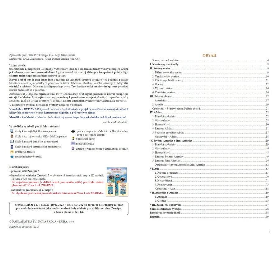 Učebnice zeměpisu pro 7. ročník je vytvořena v souladu s moderními trendy výuky zeměpisu. Důraz je kladen na názornost, srozumitelnost, logické souvislosti a mezipředmětové vztahy.