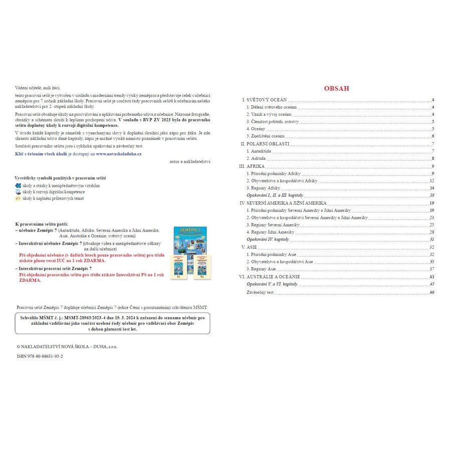 Tento pracovní sešit je vytvořen v souladu s moderními trendy výuky zeměpisu a představuje celek s učebnicí zeměpisu pro 7. ročník základní školy. Pracovní sešit je součástí řady pracovních sešitů k učebnicím našeho nakladatelství pro 2. stupeň základní školy.