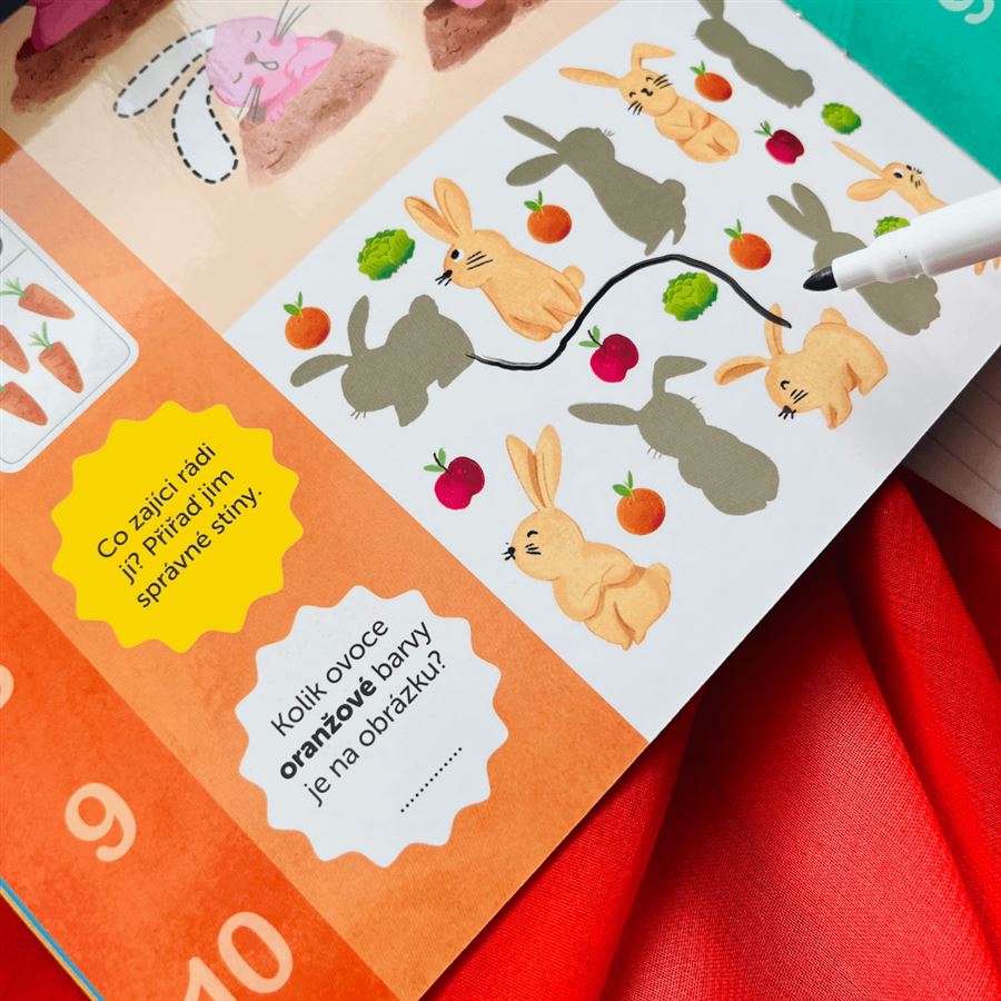 Součástí každého sešitu je fix se speciální houbičkou, pomocí které se nezdary dětiček rychlé změní na úspěchy. Jednotlivé úkoly lze po vyplnění setřít, a tedy opakovaně vyplňovat.