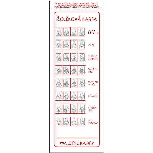 žolíků. Žolíci je aršík samolepících obrázků žolíků, které se po vystříhání vlepují za odměnu do žolíkové
