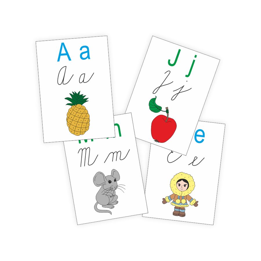 Písmena (i psací) A, E, I, O, U, M, T, J, B, K, L, P, R, S, Š, V, D, N, Z, Ž, Ř, H, C, Č, F, G, CH, Ň, Ď, Ť, X, Y, W, Q s obrázkem.