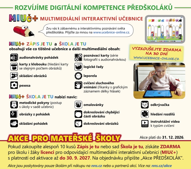 • součástí pracovních učebnic je 15 audiopohádek, které si můžete přehrát v počítači, tabletu nebo na mobilním telefonu na www.nns.cz/pohadky