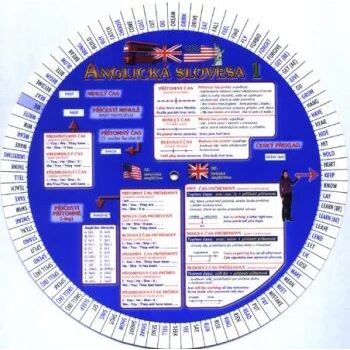 Kolečko obsahuje 92 nejpoužívanějších nepravidelných sloves nutných ke zvládnutí základů angličtiny.