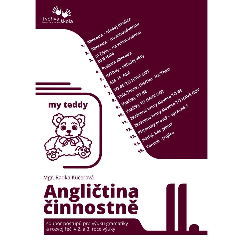 Tento soubor činnostních postupů je vytvořený pro začátky výuky Aj v 2. – 3. ročníku ZŠ. Hlavním smyslem je rozvíjení mluvené podoby jazyka za pomocí tzv. větných vzorců, které se opakovaným používáním jednoduchých pomůcek postupně vytváření v mozku dítěte. Tyto spoje jsou nezbytné pro porozumění jazyku a další jazykový vývoj.