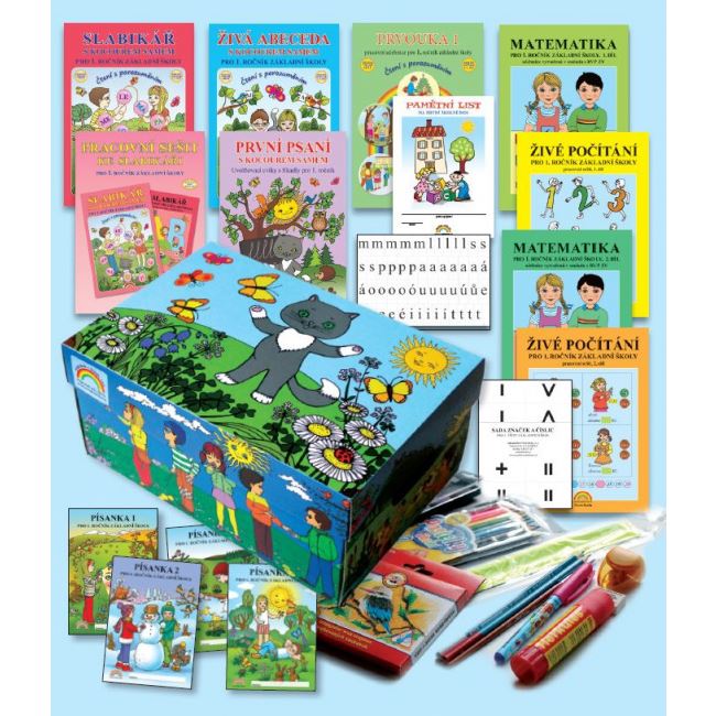 Dárkový balíček je uložen v pevné krabici. Obsahuje všechny učebnice a pracovní sešity potřebné pro prvňáky spolu se základními školními potřebami. Celý komplet jsme připravili za zvýhodněnou cenu.