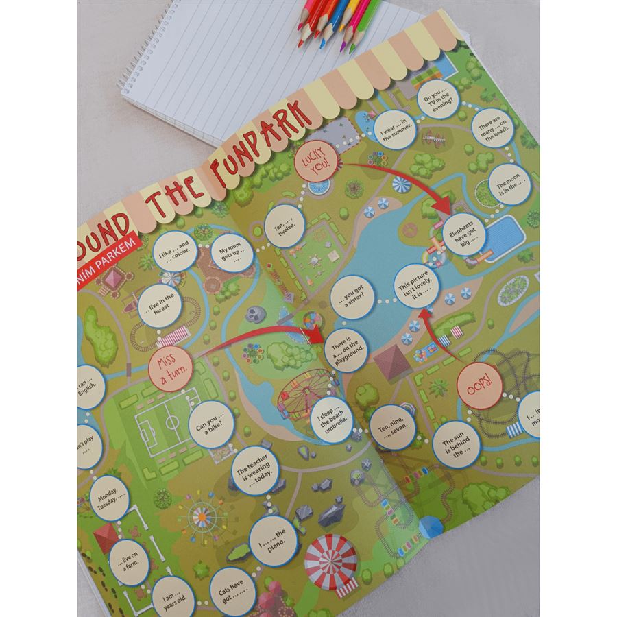 Její součástí je i vyjímatelná karta s předlohou ke třem stolním hrám zaměřeným na probíranou slovní zásobu, klíč s řešeními úloh, anglicko-český slovník a online dostupné zvukové nahrávky s doprovodným přepisem.