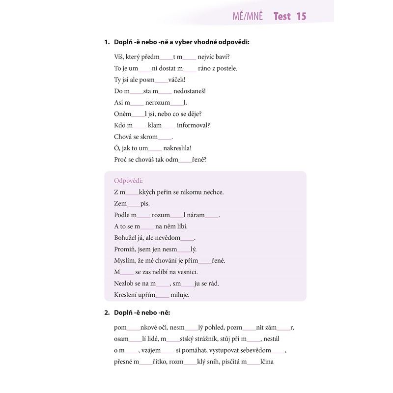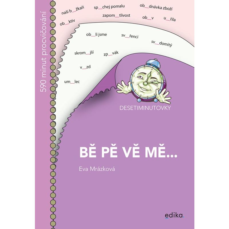 Správné použití -ě nebo -je ve větách je nejen důležité pro dobrou známku z písemky, ale může zabránit i nedorozumění, které by vzniklo kvůli změně významu slova. Desetiminutovky jsou určené každému, kdo si potřebuje v pár minutách prověřit své znalosti. V knize najdeme velké množství materiálu na procvičení BJE, VJE, BĚ, PĚ, VĚ + MĚ, MNĚ. Můžeme vyplňovat jeden list po druhém, anebo na přeskáčku. Stránky se dají snadno z knihy vyjmout díky perforovaným okrajům a vyplnit kdekoliv a kdykoliv se to hodí.