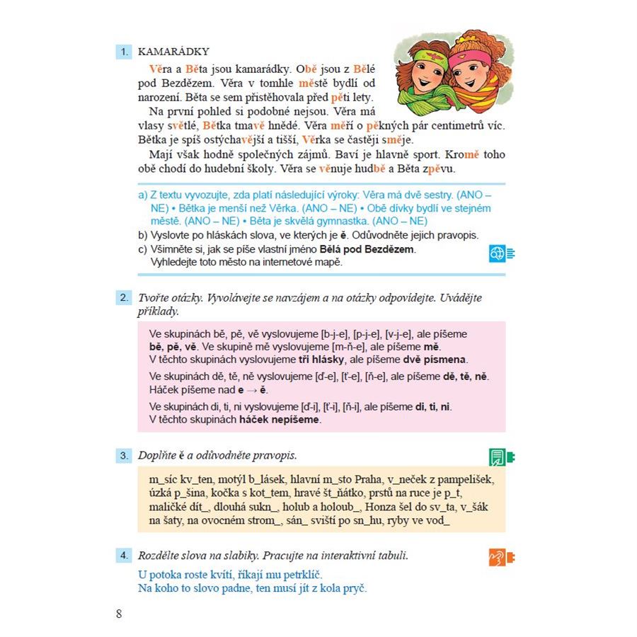podtrhávání nebo vyhledávání v textu při práci s tištěnou učebnicí žáci postupují souběžně s tím, co se děje na interaktivní tabuli.