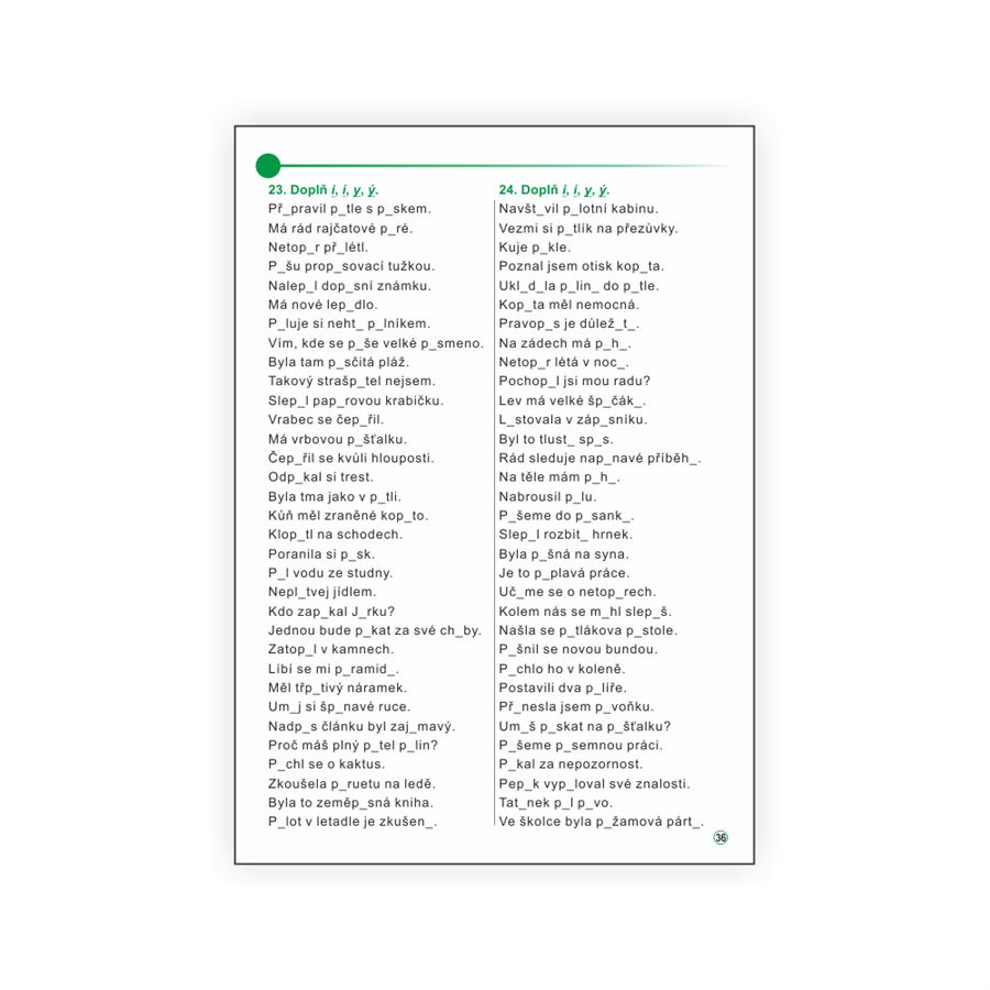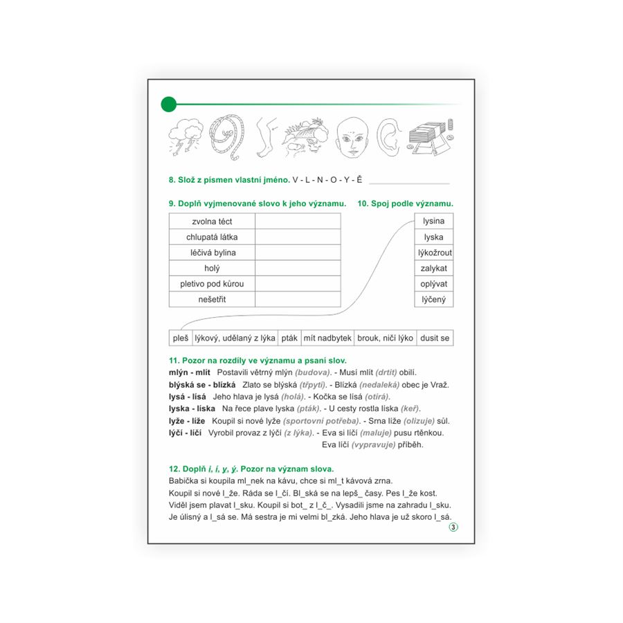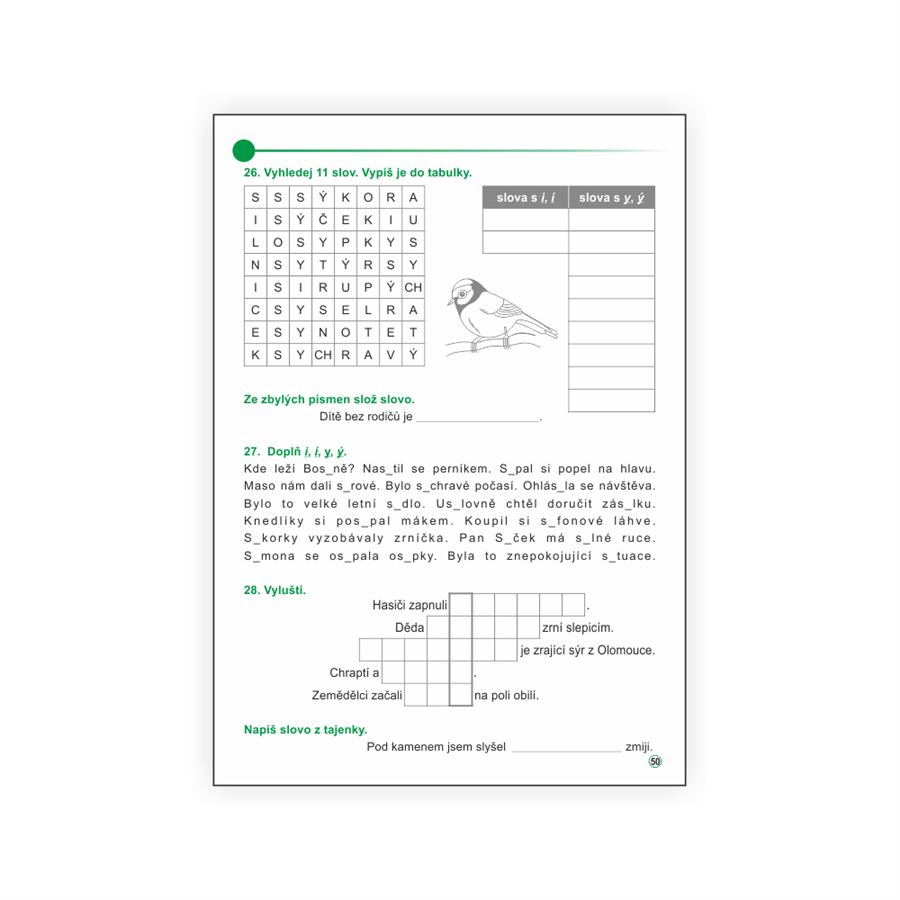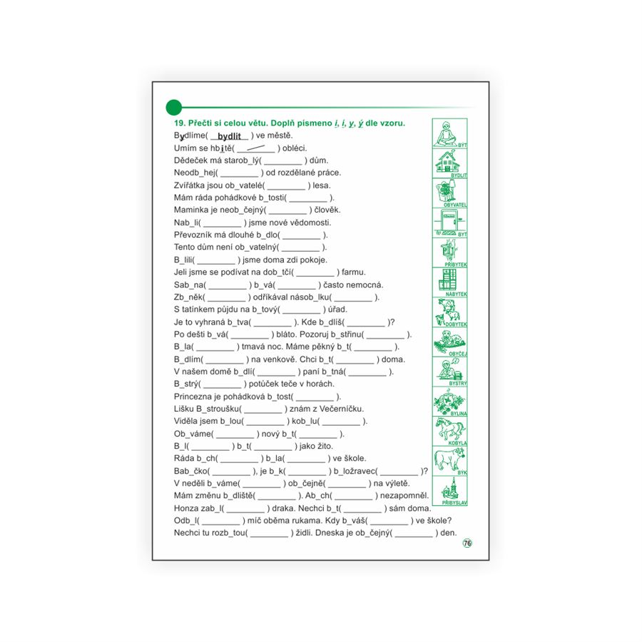 Učebnice nabízí dostatek možností pro procvičení psaní I, Í, Y, Ý v kořenu slov a opakování učiva.