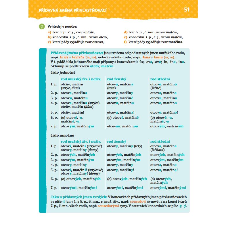 Pátý díl učebnice doplňuje a završuje veškeré podstatné učivo, se kterým by se žáci na 1. stupni ZŠ měli setkat. Uvádí jak učivo základní, jako je např. skloňování přídavných jmen, tak také upozorňuje na učivo, které ocení žáci připravující se na přijímací zkoušky na osmiletá gymnázia. Učebnice navíc věnuje velký prostor soustavnému opakování z předešlých čtyř ročníků tak, aby žáci měli možnost si skutečně upevnit poznatky i dovednosti dříve nabyté.