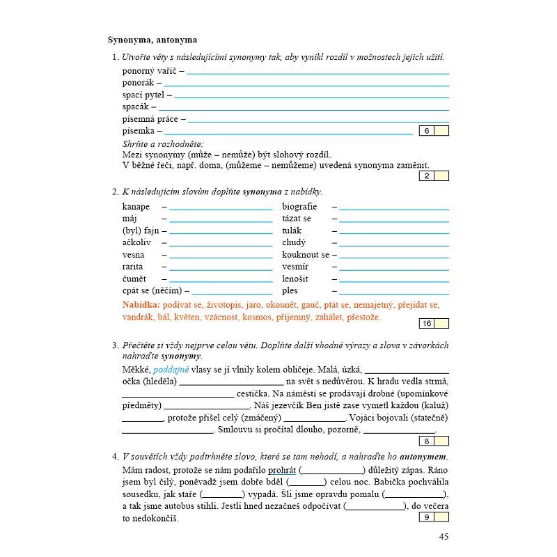 Pracovní sešit je zásobníkem diktátů, cvičení, textů a přehledů, který žáci mají po ruce celý rok.