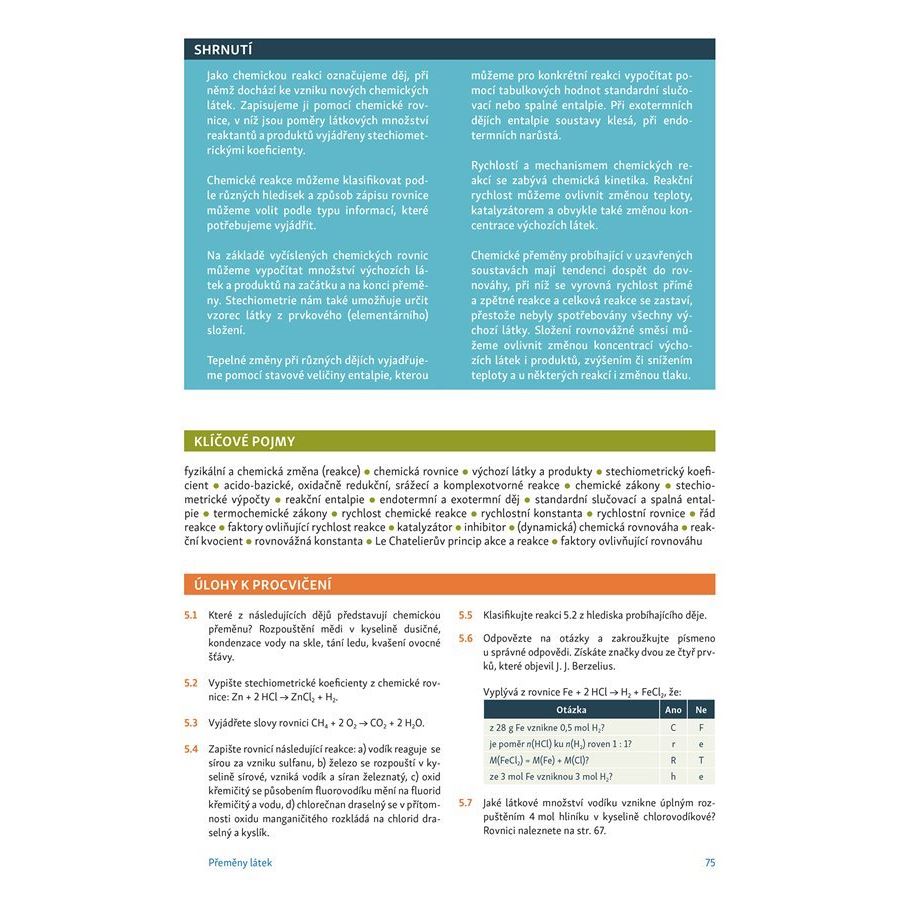V závěru kapitoly je shrnutí probíraného učiva, klíčové pojmy, které slouží žákům ke kontrole, zda obsahu kapitoly porozuměli, a úlohy k procvičení učiva.
