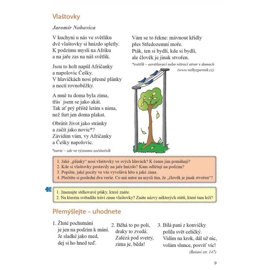 Je součástí nové edice Čtení s porozuměním a rozšiřuje řadu učebnic zaměřených na podporu čtenářské gramotnosti. Cílem je dále prohlubovat zájem o literaturu poutavými články a zábavnými úkoly motivovat k četbě. Každá literární ukázka je doplněna úkoly směřujícími k rozvoji čtenářské gramotnosti. Texty jsou voleny tak, aby zahrnovaly všechny literární žánry přiměřené dané věkové skupině a aby zároveň korespondovaly s učivem probíraným v hodinách přírodovědy. Na znalosti z přírodovědy je současně cílena i většina mezipředmětových otázek. Dále v čítance najdete hádanky a náměty na skupinové úkoly. Zařazeny jsou rovněž otázky a úkoly zaměřené na etickou výchovu žáků. Stručné informace o nejzákladnějších pojmech z literární teorie nebo zajímavosti k tématům z ukázky přibližuje krátký encyklopedický výklad uvedený symbolem sovy. Na konci učebnice najdete řešení hádanek.