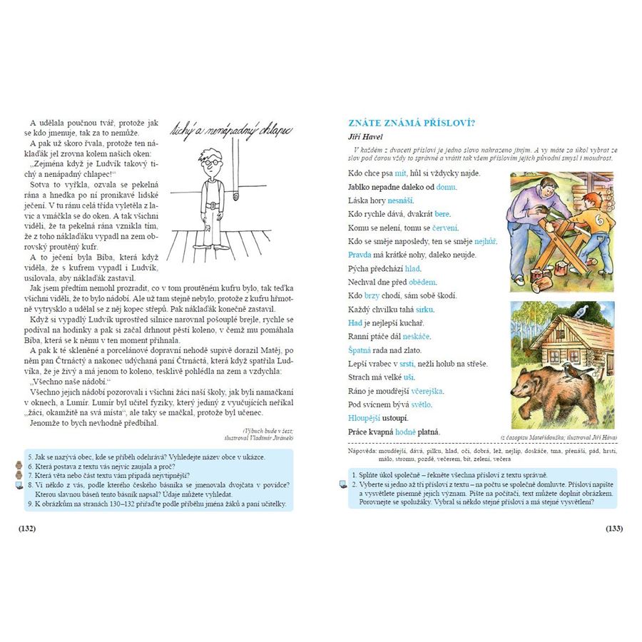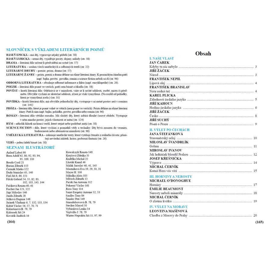 Názvy několika jiných kapitol vám připomenou učivo probírané v dalších předmětech 5. ročníku. Zde si upevníte a pomocí ukázek z encyklopedií i krásné literatury rozšíříte znalosti z hodin vlastivědy a přírodovědy. Patří sem například: