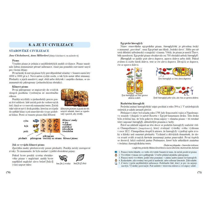 Nová škola – Duha se nacházejí ve žlutém rámečku na dolním okrajistránky (více o těchto učebnicích na www.novaskoladuha.cz). Doporučujeme, aby si žáci korespondující učivo z jiných předmětů přečetli zároveň s pročítáním danéukázky v čítance. Tím probíranou tematiku poznají z více pohledů a nové poznatky si zajímavou formou upevní.