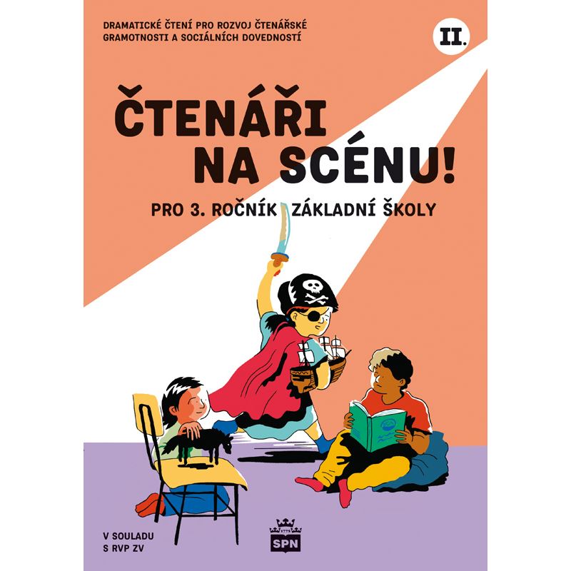 Druhý díl publikace Čtenáři na scénu! je určen žákům 3. ročníku ke společnému čtení ve třídě. Přináší poutavé veršované příběhy psané formou dialogu, které podporují rozvoj čtenářských dovedností, představivost i sebevědomí žáků. Texty vycházející z pedagogické praxe motivují děti k opakovanému čtení, rozvíjejí schopnost vzájemně se poslouchat a zároveň nabízejí prostor pro dramatizaci a vlastní tvorbu. Učebnice je doplněna digitální nadstavbou v podobě pracovních listů s úkoly a náměty pro další činnosti podporující čtenářskou gramotnost, spolupráci a tvořivost.