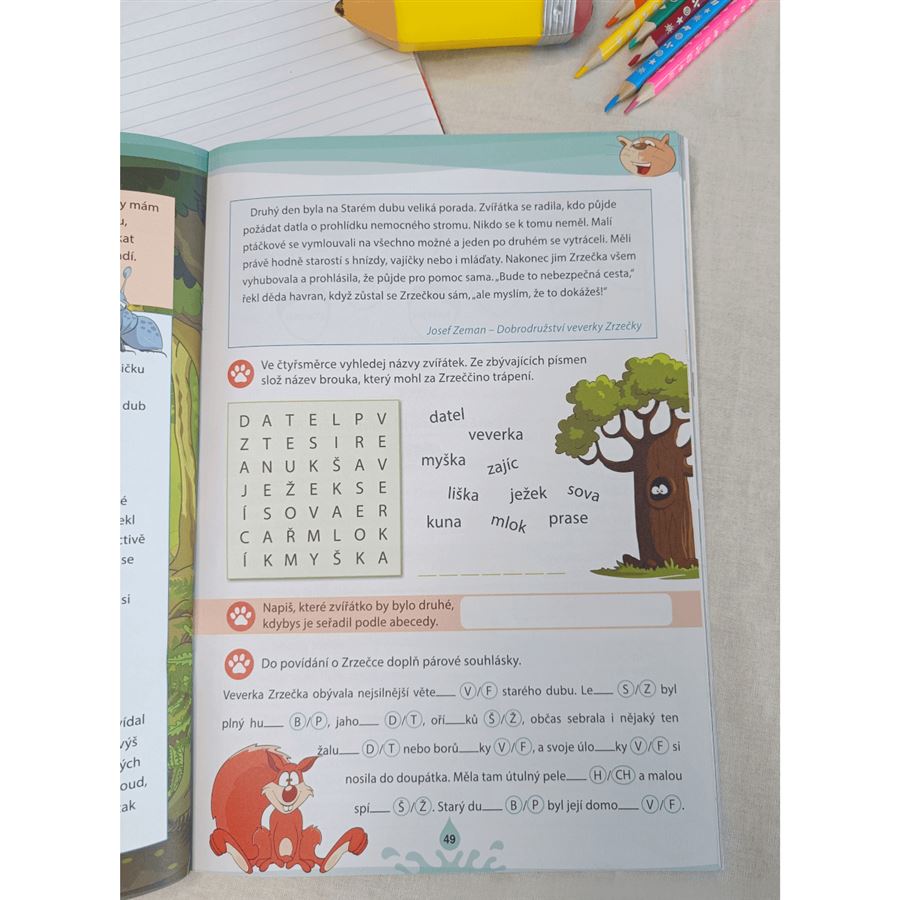 Čítanka obsahuje také velké množství cvičení, úloh a hádanek