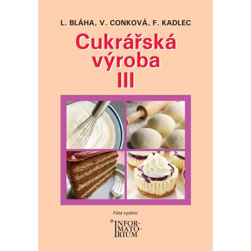 moučníků, popisuje přípravu kynutých těst a biochemické procesy probíhající v těstě při kynutí. Značnou pozornost věnuje přípravě zmrzlin a zmrzlinových výrobků a dietním výrobkům. Věnuje se technologii nových surovin pro přípravu krémů a náplní a zabývá se také hodnocením surovin a výrobků, zařízením provozoven a hygienou výroby.
