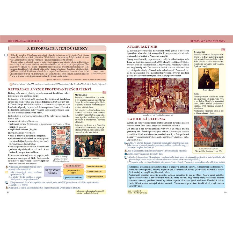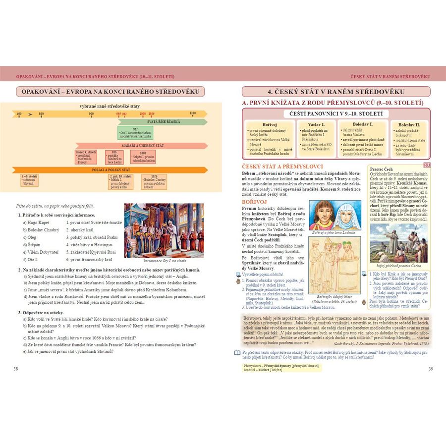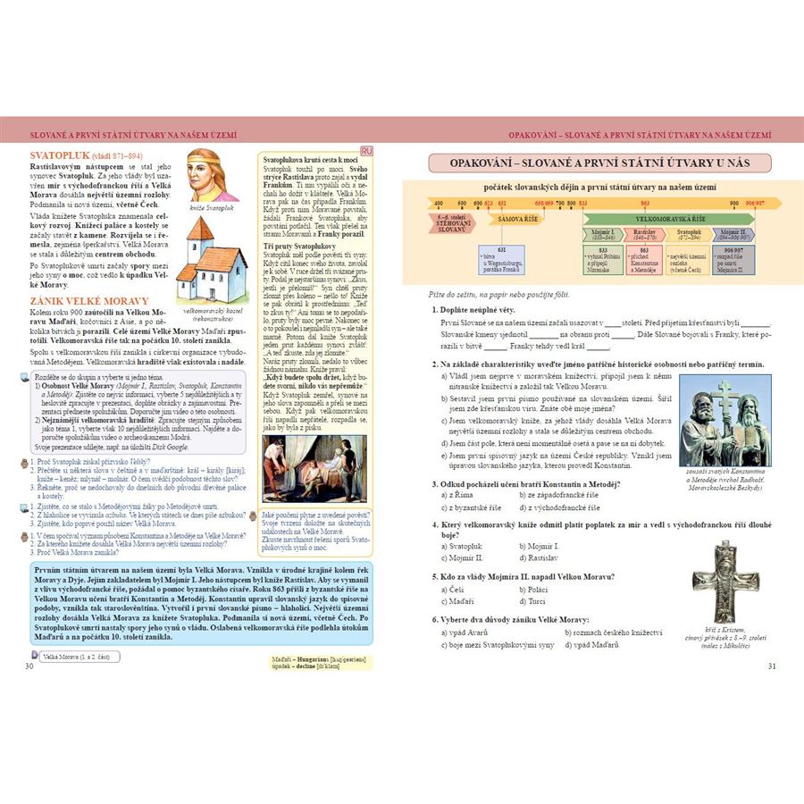 Součástí učebnice jsou i ukázky z krásné literatury a související otázky k porozumění textu. Každá větší kapitola je zakončena opakováním. Učebnice obsahuje mnoho názorných fotografií, obrázků a schémat. Díky nim pochopí žáci lépe učivo. Text doplňují časové osy a velké množství map, které pomáhají žákům orientovat se v popisovaných dějinných událostech.