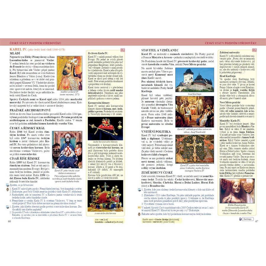 Základní text je obohacen o zajímavosti, které jsou uvedeny menším písmem ve žlutých sloupcích po okrajích učebnice. Tyto doplňující údaje mají motivovat žáky k dalšímu zjišťování okolností a podrobností probíraných témat, nejsou určeny k zapamatování.