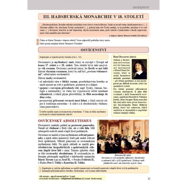 Učebnice je systematicky a přehledně členěna do tematických kapitol. V podkapitolách jsou vždy uvedena základní fakta s minimem odborných pojmů a letopočtů.