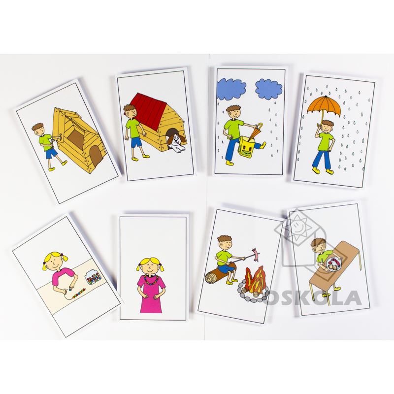 Soubor šesti jednoduchých dějových posloupností, každá má čtyři karty.