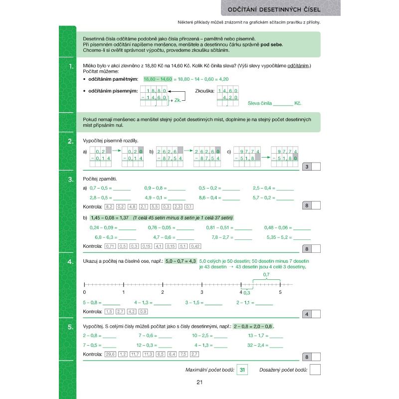 Obsahuje cvičení, ve kterých žáci blíže poznávají desetinná čísla, s nimiž se denně v běžném životě setkávají;