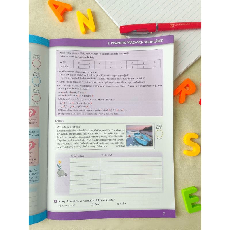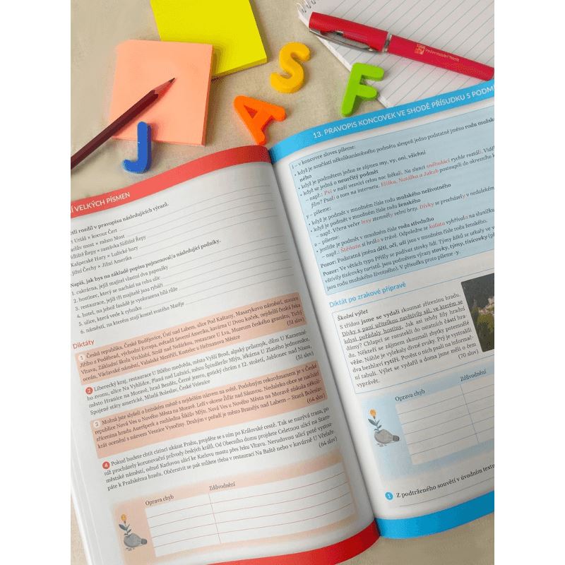Publikace nabízí prostor pro sebehodnocení, opravu i sledování vlastního pokroku. Zajímavá a různorodá témata diktátů rozvíjejí všeobecný přehled žáků a mezipředmětové vazby. Vedle klasických diktátů a doplňovacích cvičení publikace obsahuje i tvořivé úlohy a cvičení, která se zaměřují na přípravu k přijímacím zkouškám na SŠ.