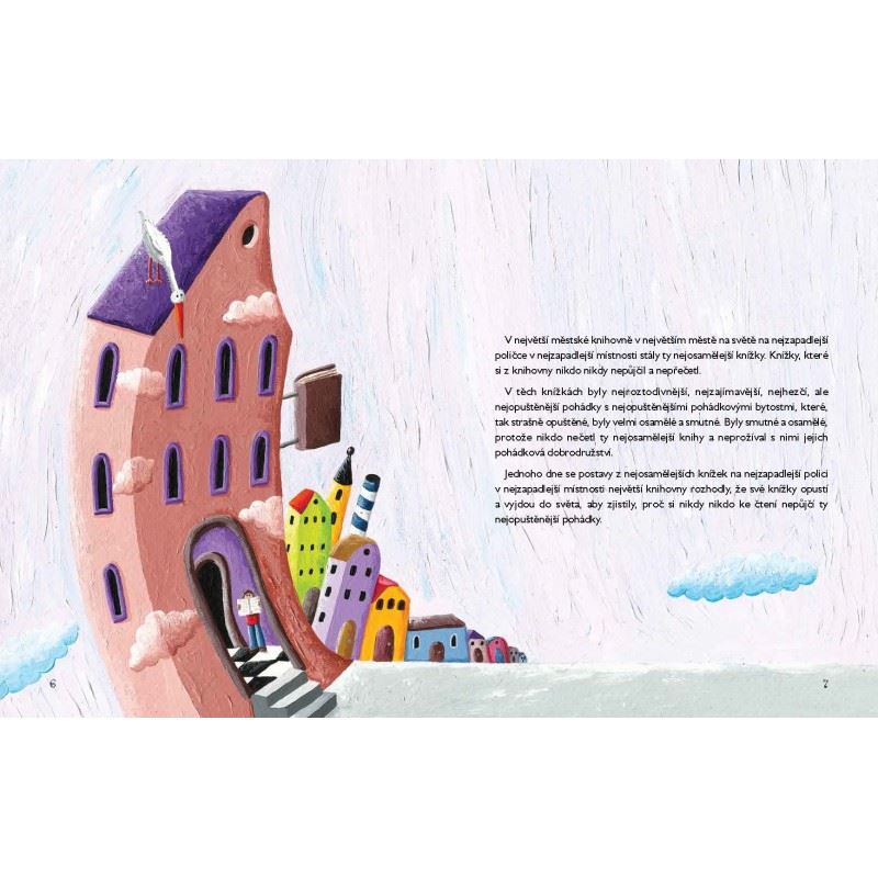 Knížky, které si z knihovny nikdo nikdy nepůjčil a nepřečetl. Jednoho dne se pohádkové bytosti z nejosamělejších knížek rozhodly, že své knížky opustí a vyjdou do světa, aby zjistily, proč si je nikdy nikdo ke čtení nepůjčí.